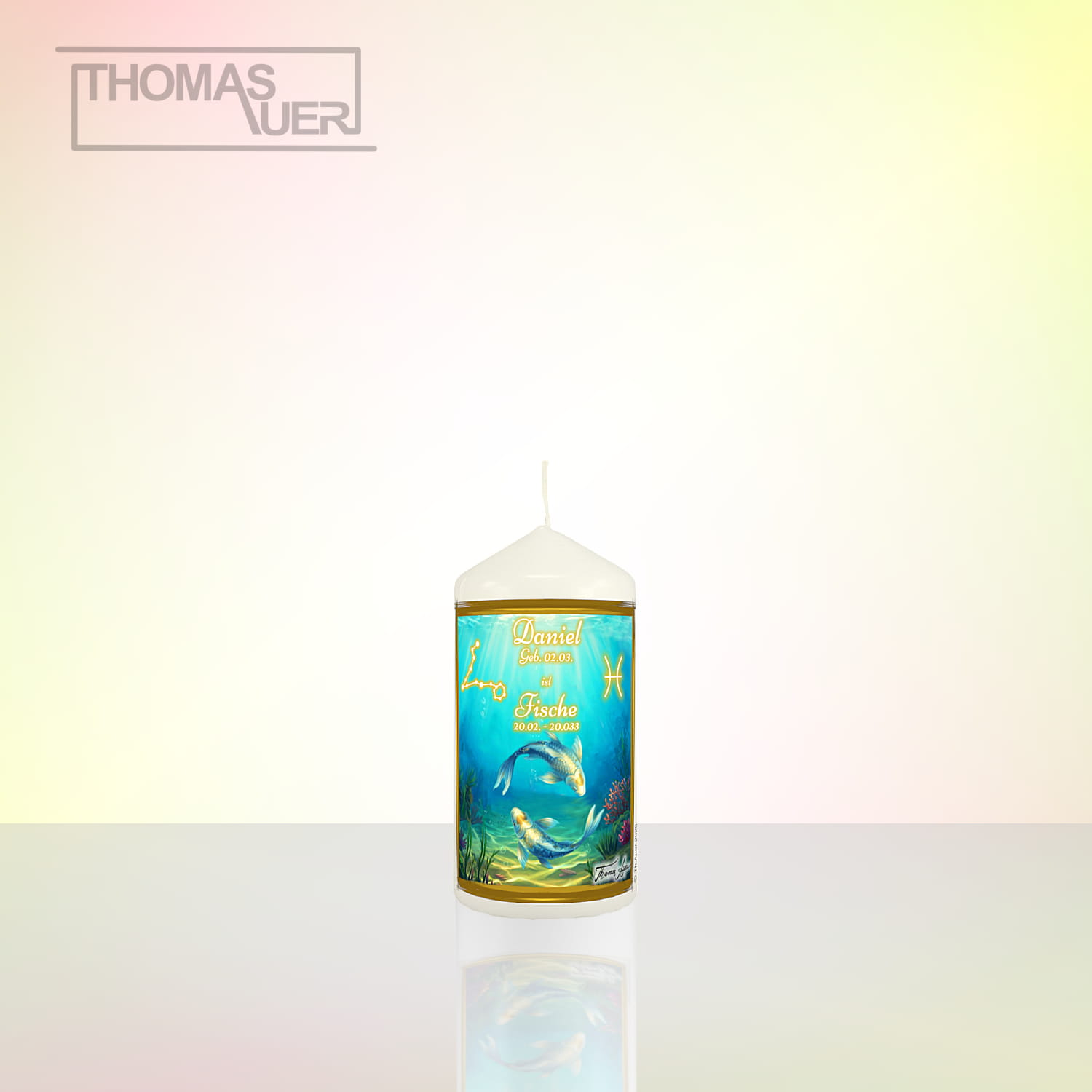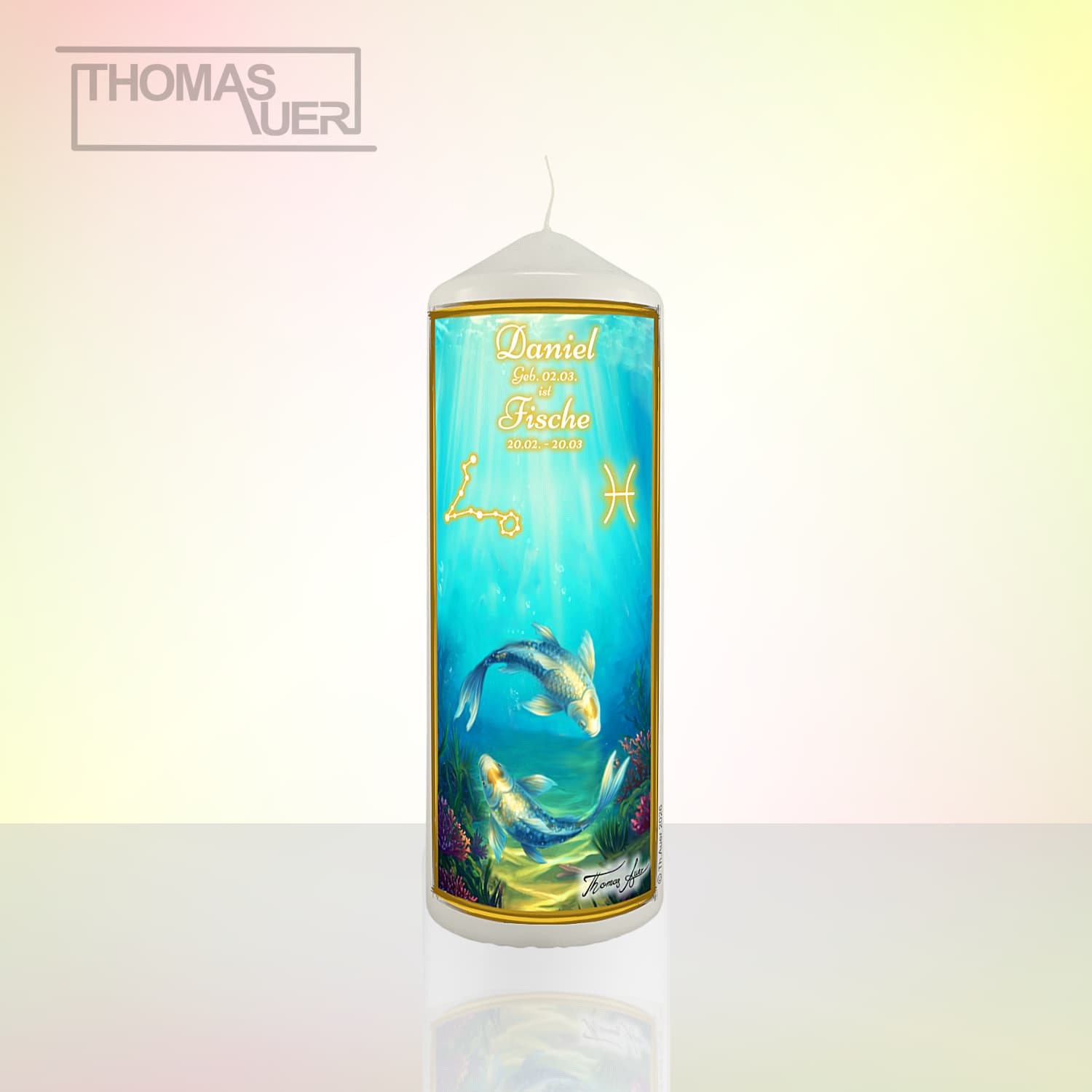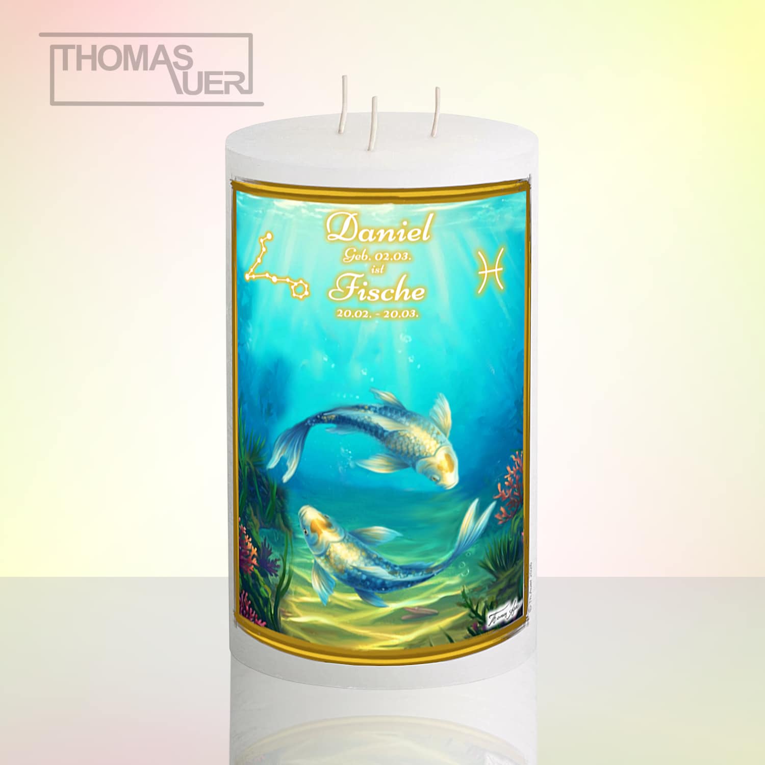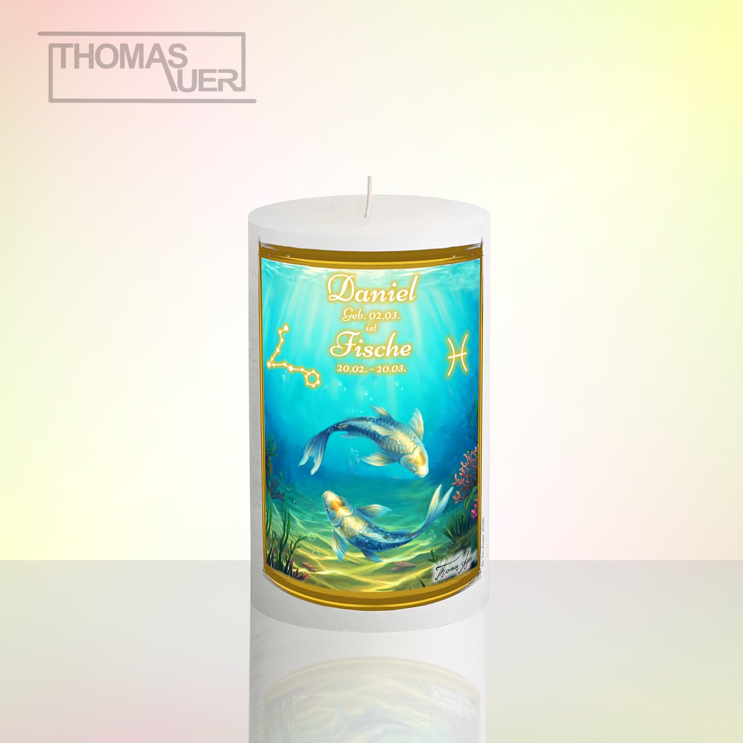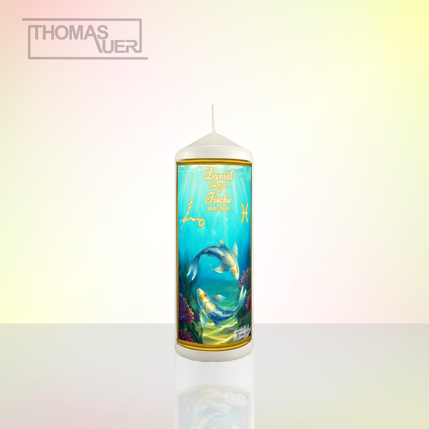 Sternzeichenkerze „Fische“ mit Name/Geburtsdatum